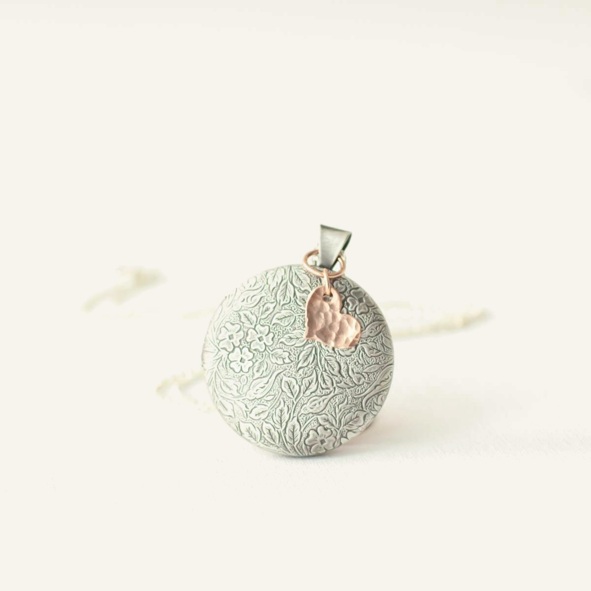 Forget Me Not Locket in Antique Silver, Rose Gold and Gold - Choose 0-2 Photos