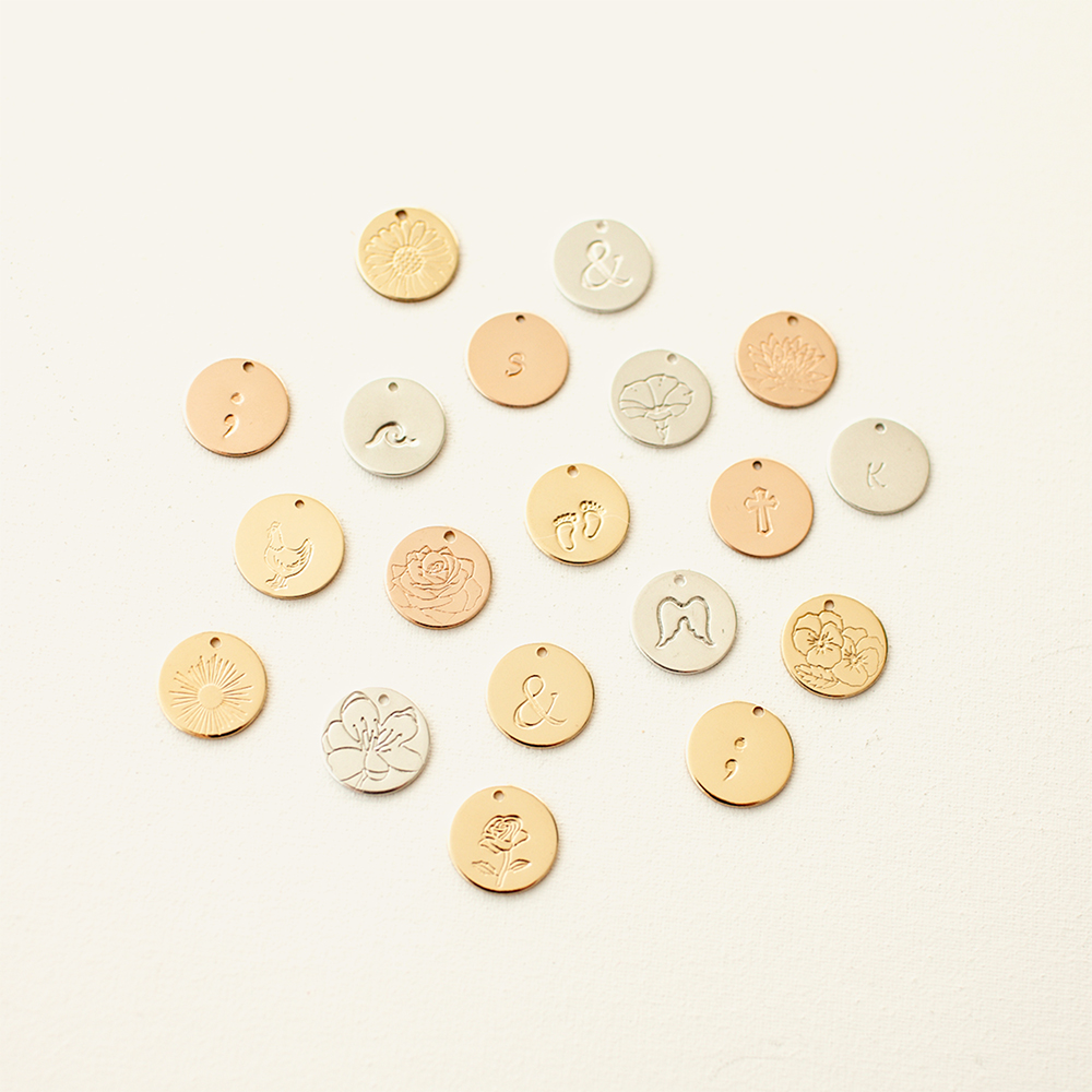 In the personalization box, please leave the stamp or initial you want. Choose from a custom stamp, initial or birth month flower. We use the larger birth month flower for this size disc.