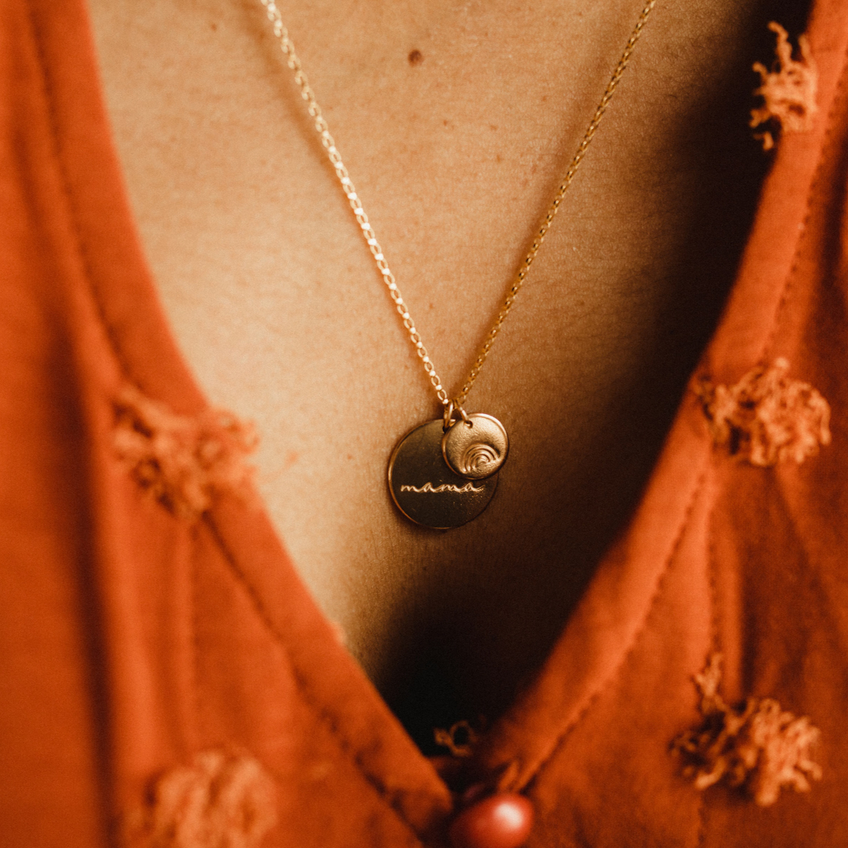 Are you a mama that loves wearing a reminder of your kids close to your heart? This cursive mama necklace is the perfect way to celebrate yourself and your kids. Choose between sterling silver, rose gold filled, and gold filled. Choose the number of discs to celebrate your kids.