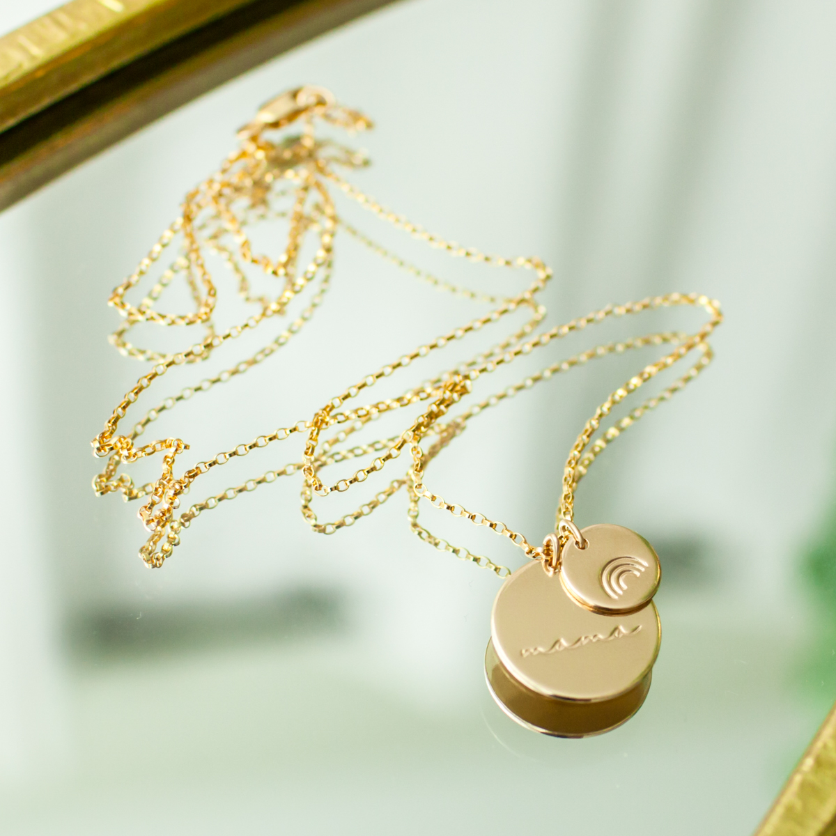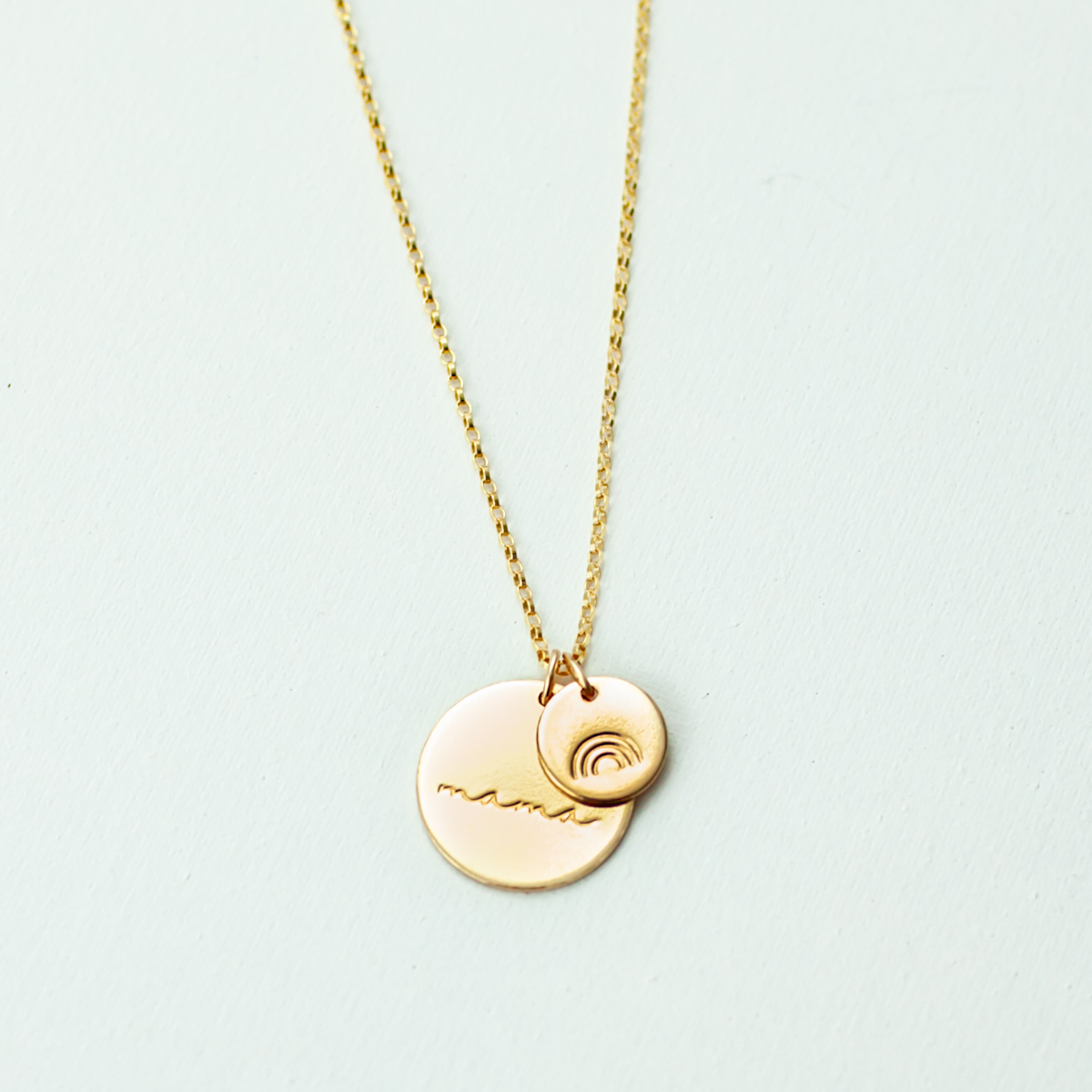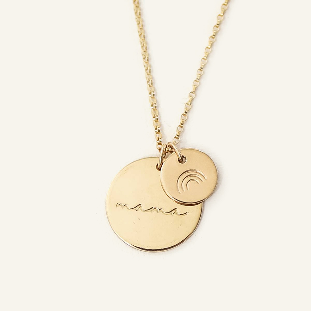 Cursive Mama 5/8″ and 1/3″ Disc Necklace