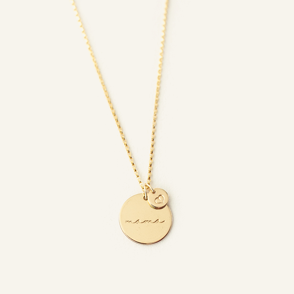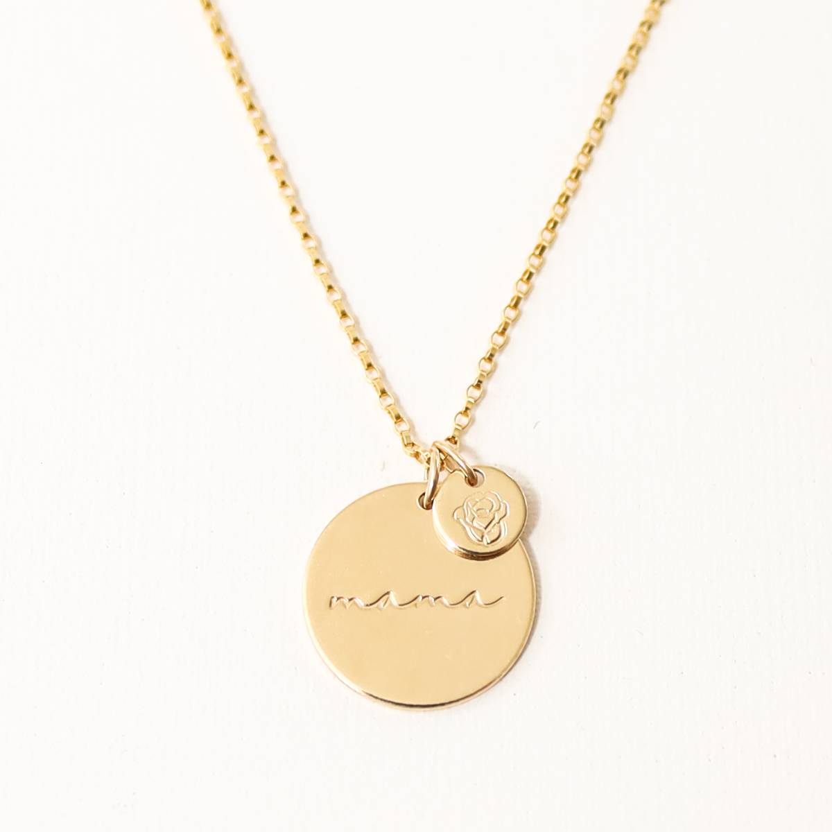 Are you a mama that loves wearing a reminder of your kids close to your heart? This cursive mama necklace is the perfect way to celebrate yourself and your kids. Choose between sterling silver, rose gold filled, and gold filled. Choose the number of discs to celebrate your kids.