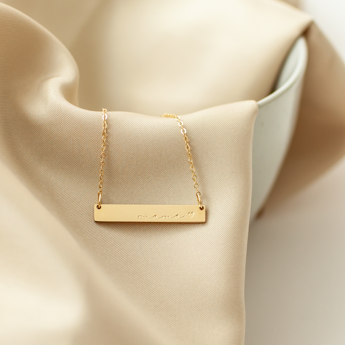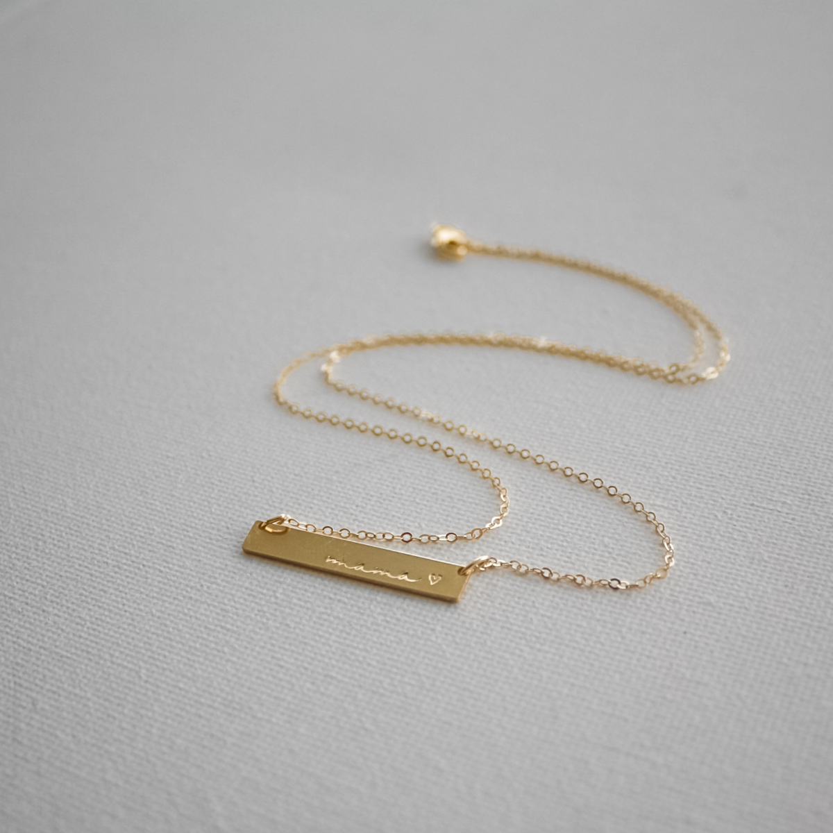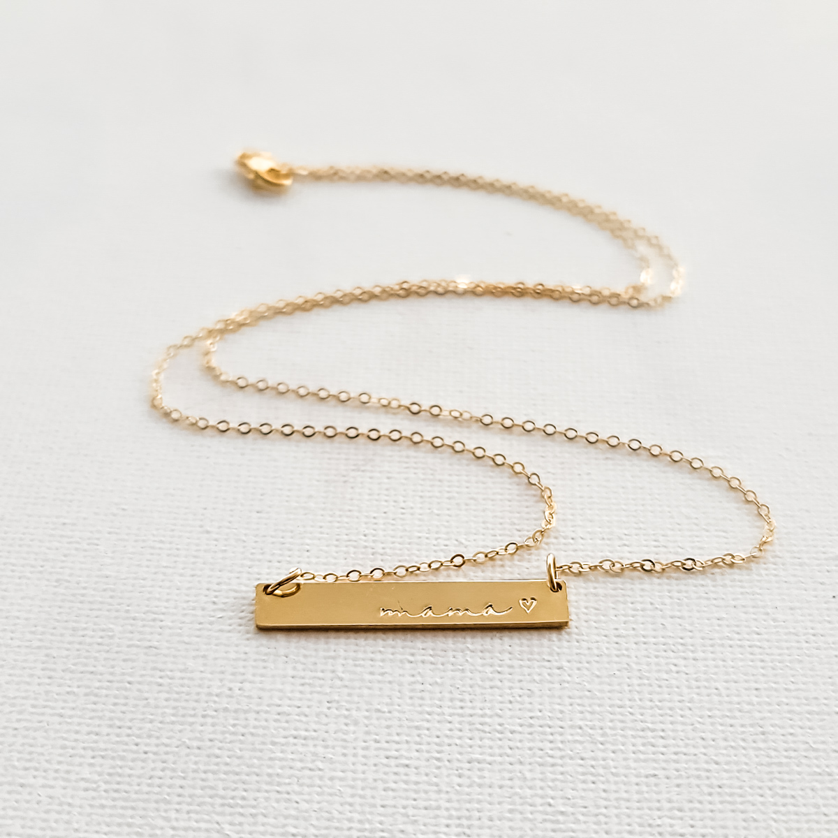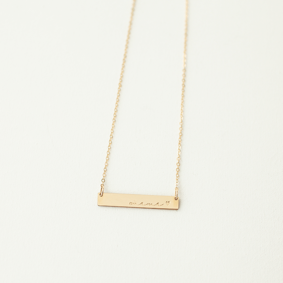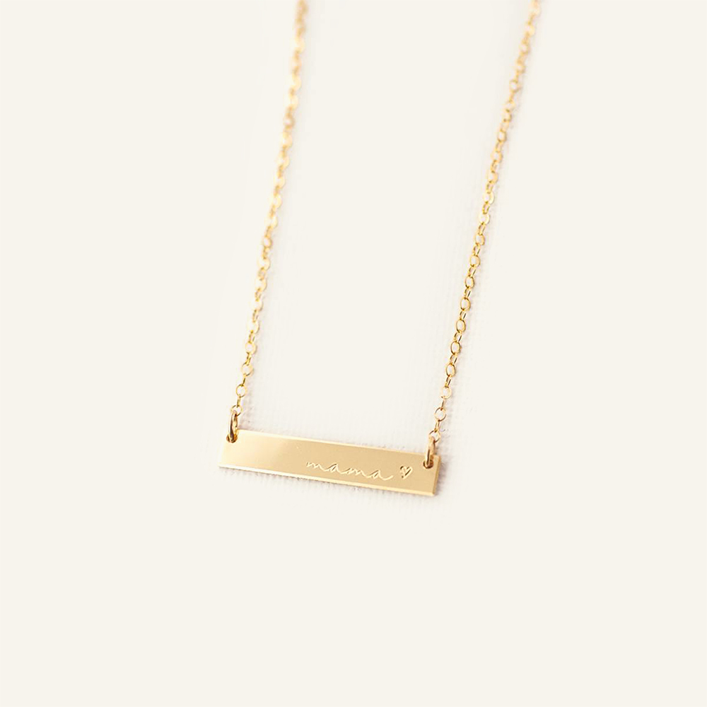 You’re going to love this cursive mama bar with a heart necklace and want to wear it all the time! It’s the perfect necklace to celebrate the mama in your life – or even as the perfect little bar necklace for yourself. You can wear this alone or layered with one of our other necklaces or lockets. This dainty bar is made of thick gold filled, rose gold filled or sterling silver bars, so it will last for years and years to come. It’s the perfect gift for your wife, a best friend, daughter, mother, grandmother, teacher, coach, sister to celebrate motherhood.