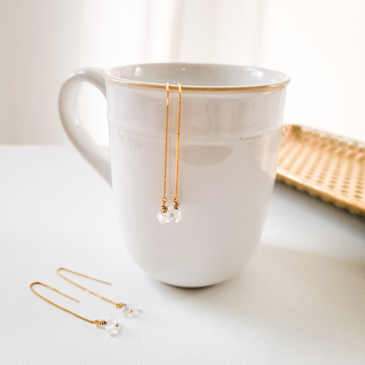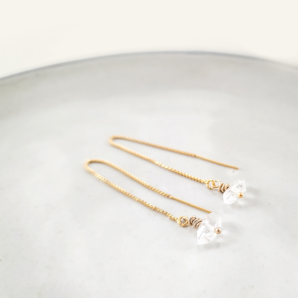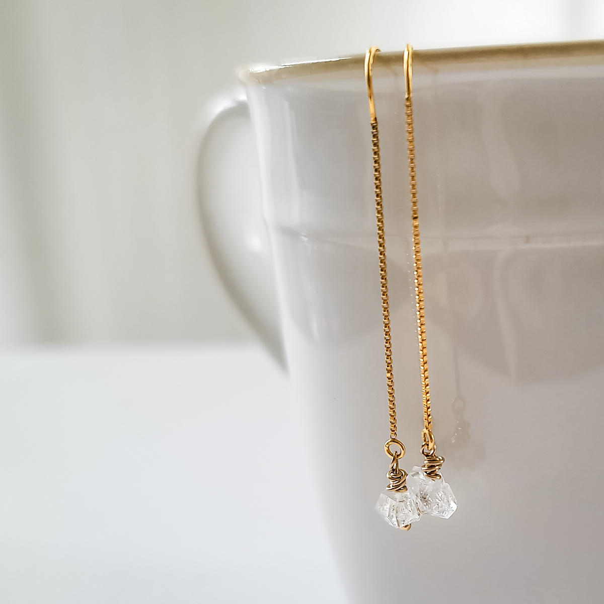 Herkimer Diamond Threader Earrings in Gold and Sterling Silver