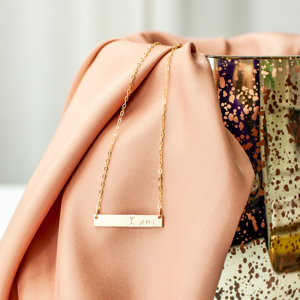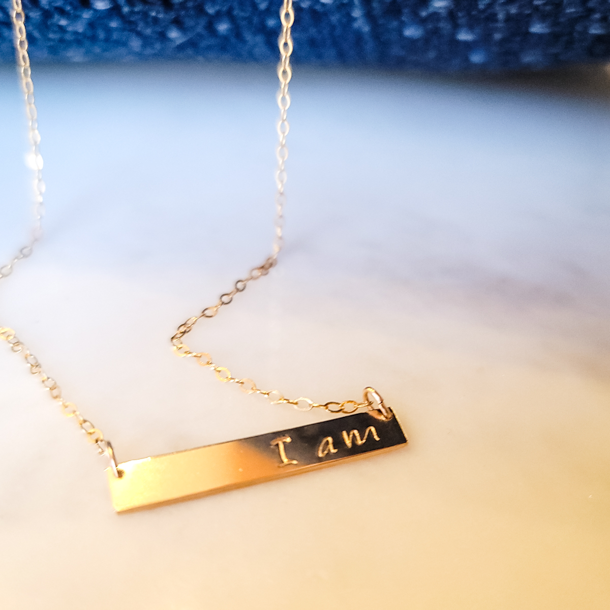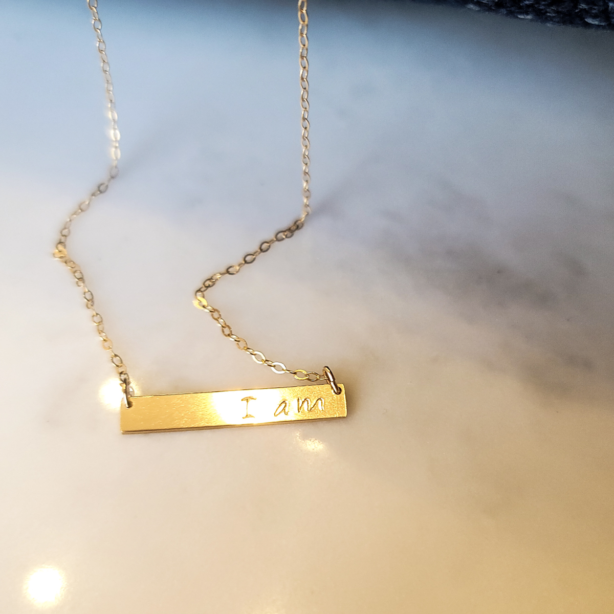 Made on a thick 5mm x 30mm bar in gold filled, rose gold filled and sterling silver so that it will last for years to come. See our larger 16mm disc I am necklace See our See our I am bar necklace.
