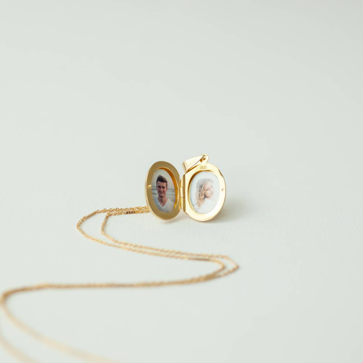Photos can be added to this locket. We will size, print and insert up to two photos you purchase for this locket. PLEASE NOTE: that this is a small-medium oval locket, so keep that in mind when you choose the photo(s) you want included. It is best if there is more than one person or pet in the photo that their faces are super close together, so that they can fit into a vertically oriented photo.