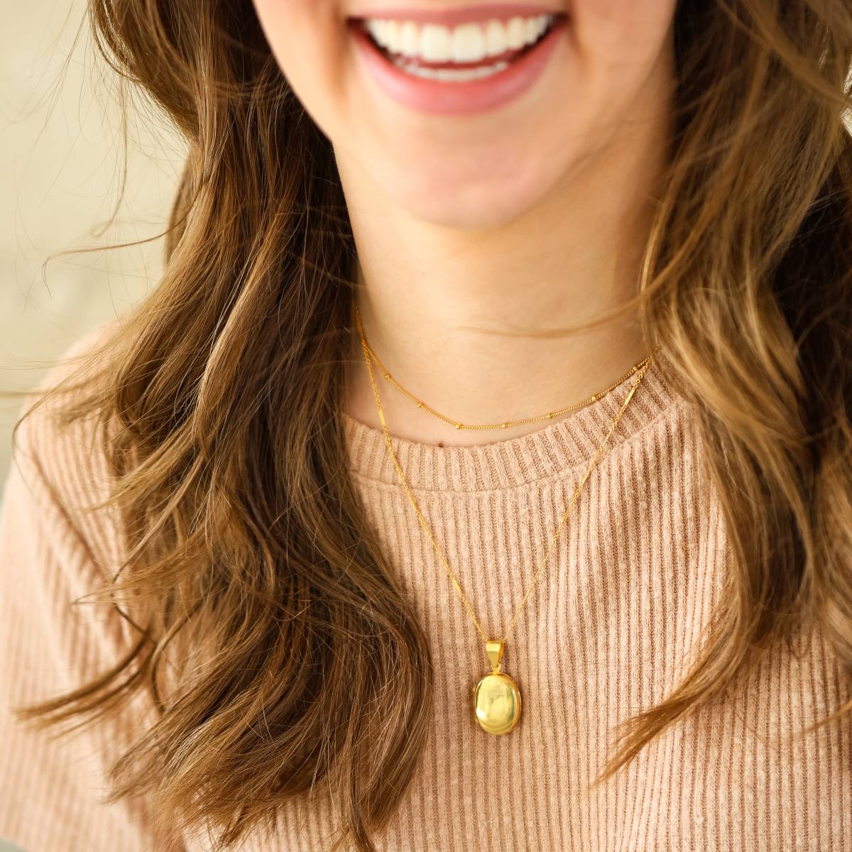 Our classy oval locket in sterling silver or gold filled is simply dainty and perfect for your favorite keep sake pictures on our bar and curb satellite chain in sterling silver or gold filled. At about an 16mm across and 30mm tall (bottom of locket to the top of the locket bail) it’s a versatile sized locket – it can be worn shorter, longer, in between and on just about any age. It’s the perfect locket for so many people and so many occasions.