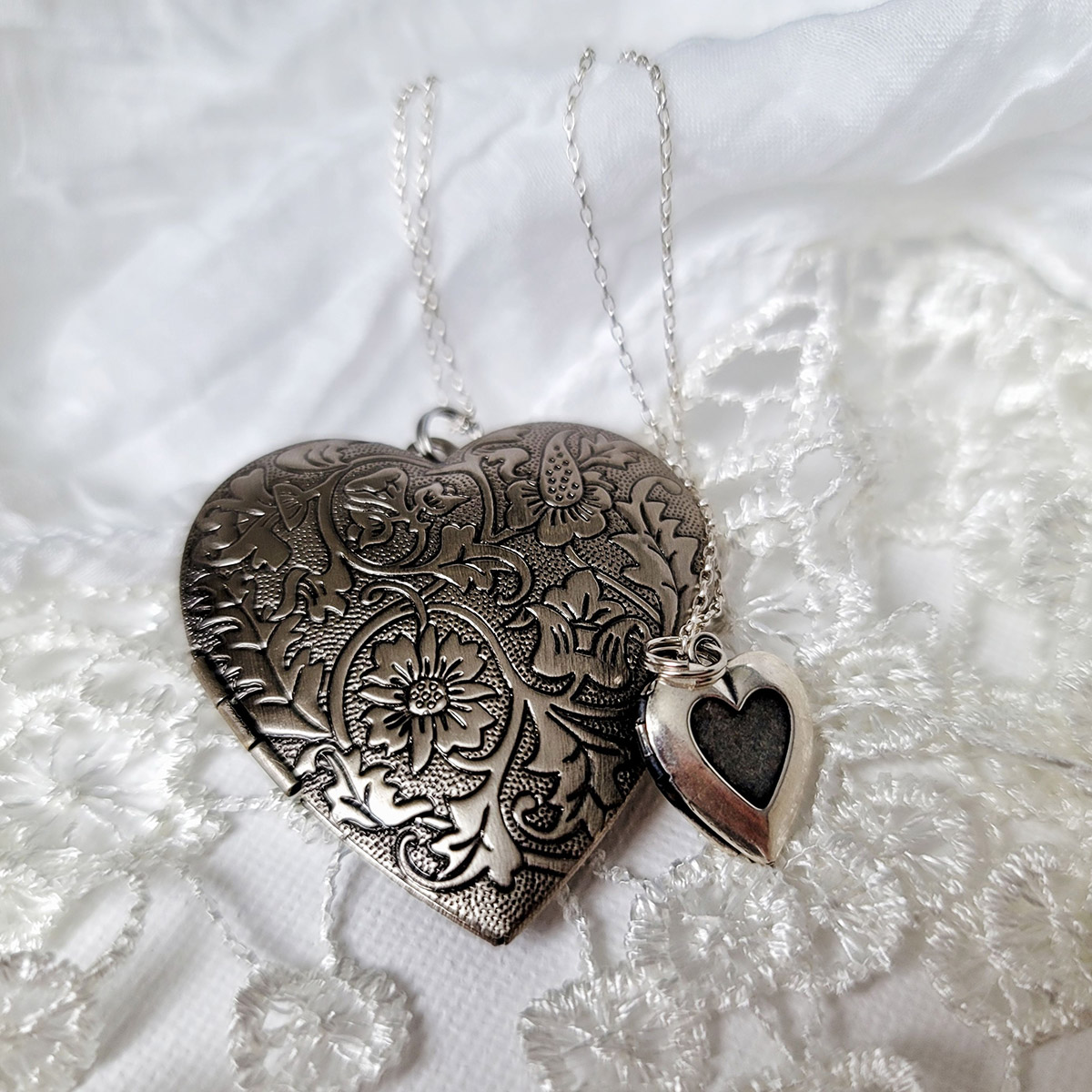 Etched Gold Filled or Sterling Silver Locket on Satellite Chain