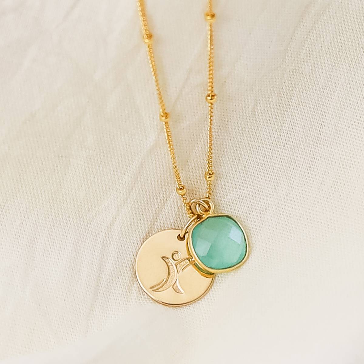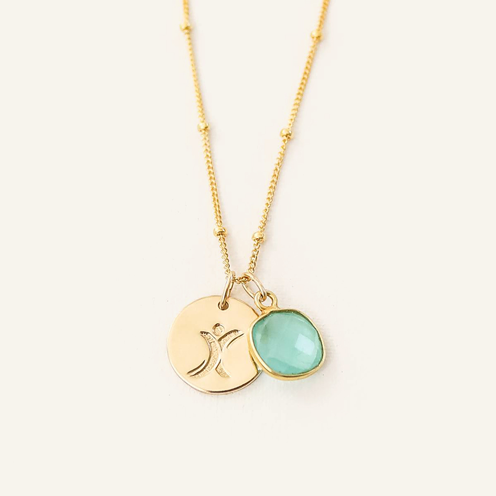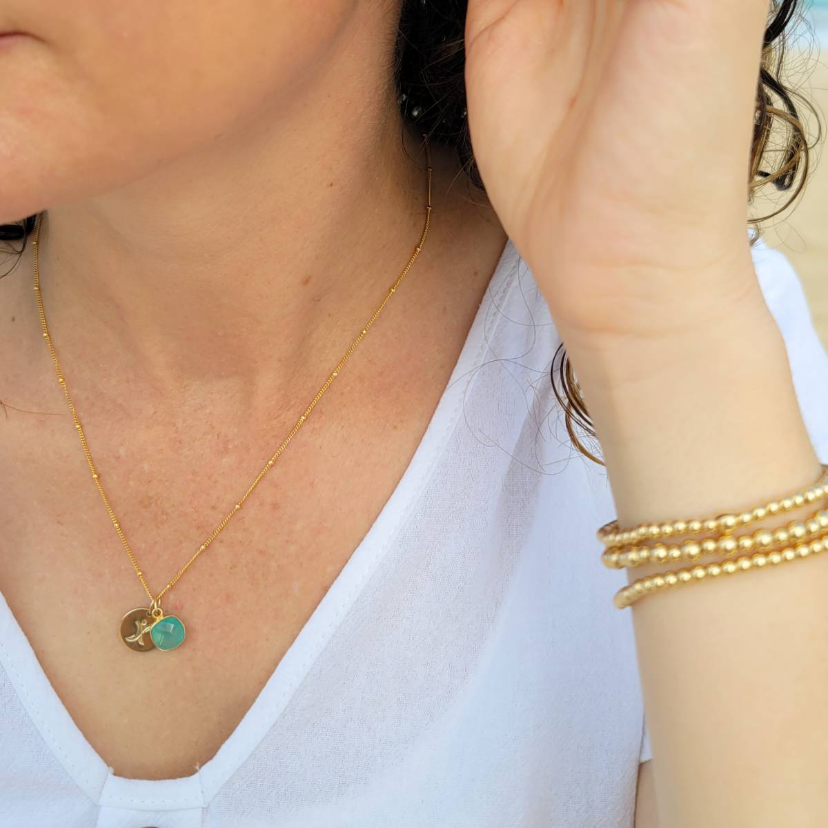 This necklace is made with our thick 13mm gold filled discs, with a gold vermeil aquamarine stone on our popular gold filled satellite chain, to celebrate you or someone you love with Tourette Syndrome. The most popular length for adults is 18 inches.