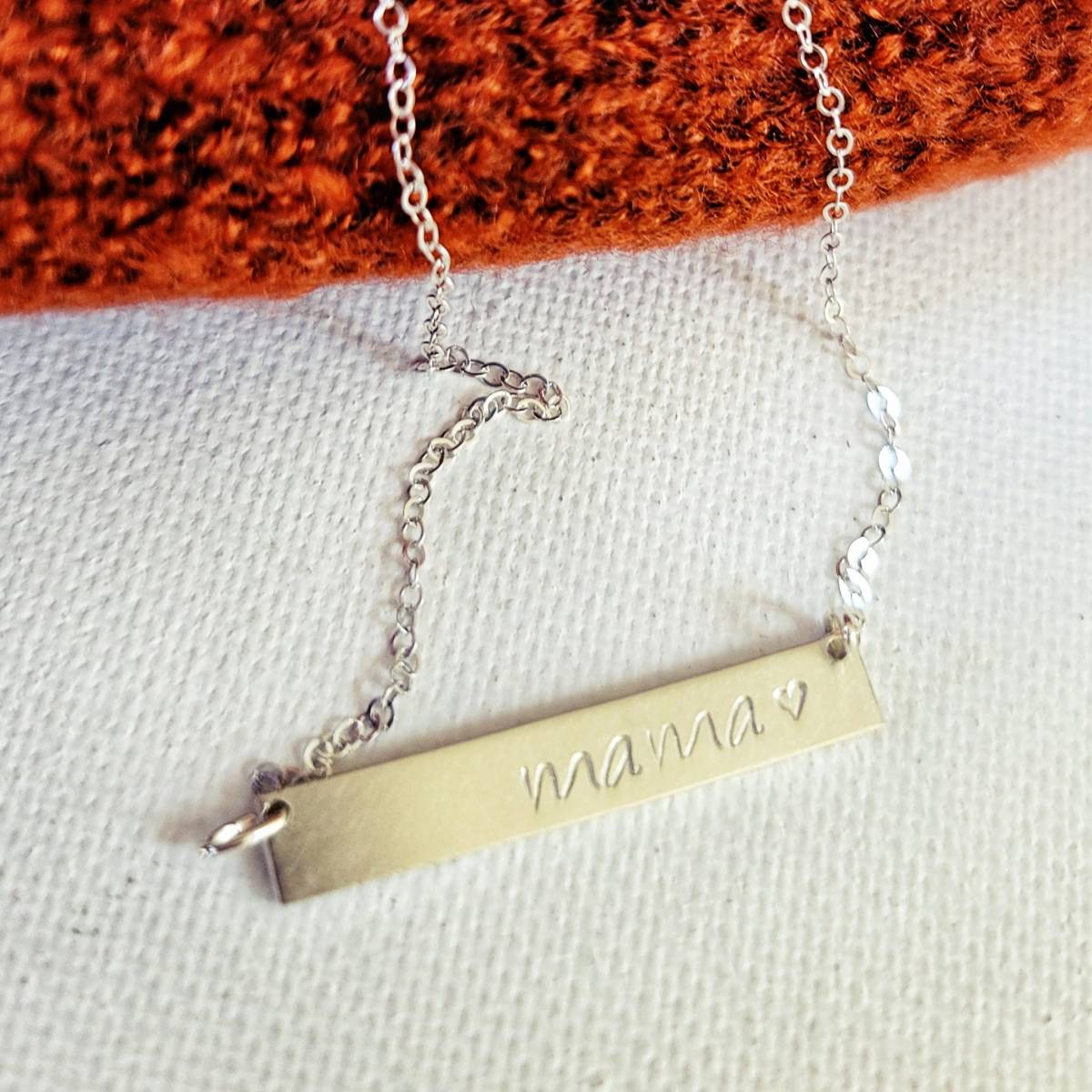 Made for all the mamas sharing their hearts every day with the little people that mean the most to them! ? These mama bar necklaces are made with sterling silver,